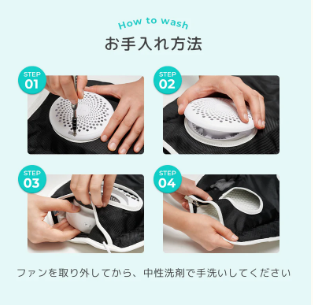 - 電子部品に注意:ファン内部の電子部品に水が入らないよう注意してください