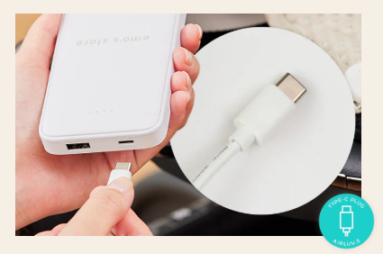 エアラブはモバイルバッテリーに接続して使用するため、電源の確保が簡単です。外出先でも手軽に使えるのが大きな魅力です。