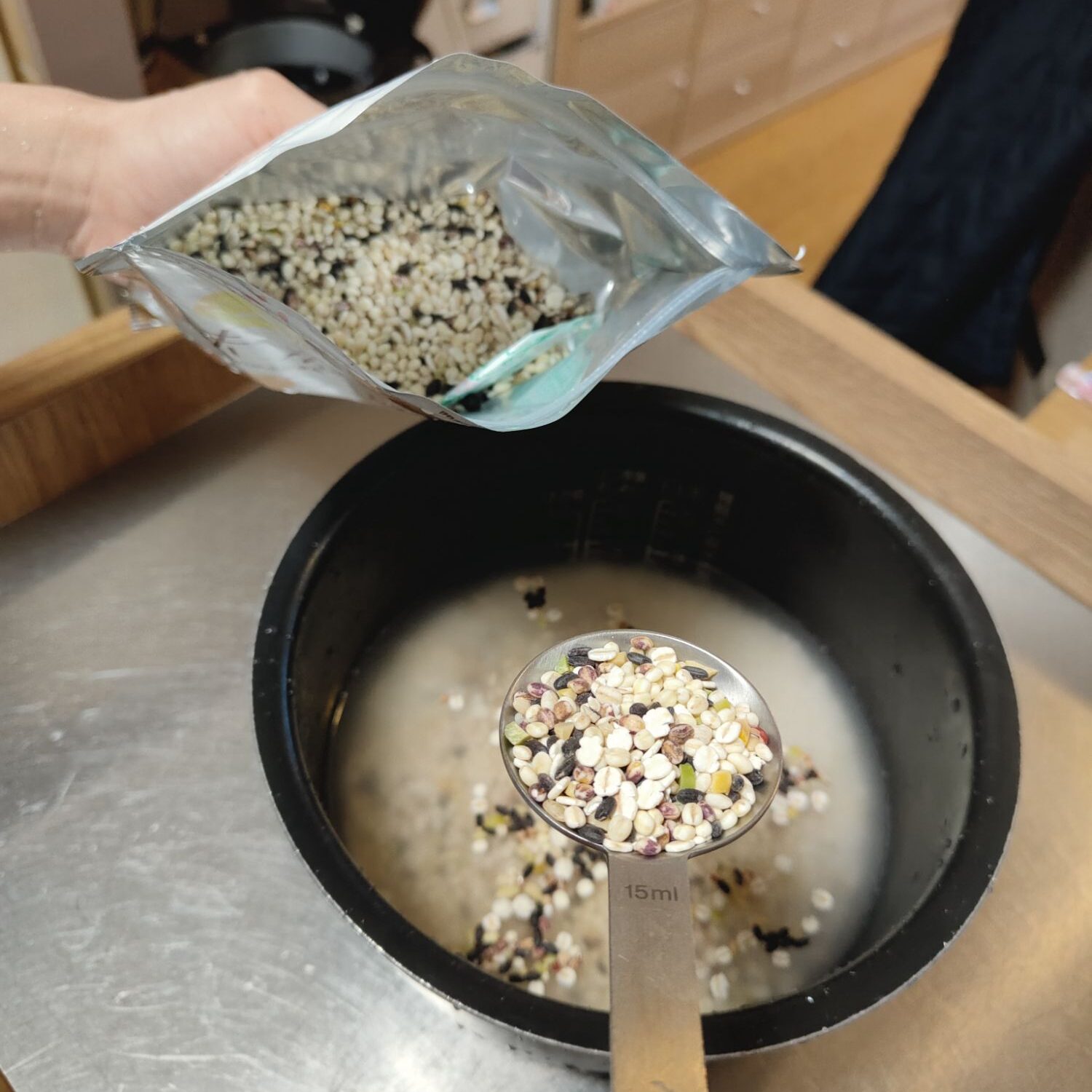 いつもの白米3合に対し、大さじ3杯ほどの未来雑穀を入れて炊飯しました。