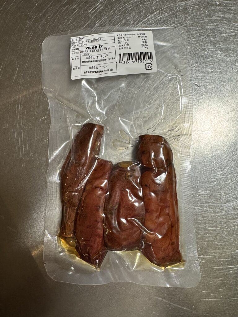 鹿児島県産の紅はるかを使った焼き芋で、蜜たっぷりのしっとり甘い仕上がりが特徴。