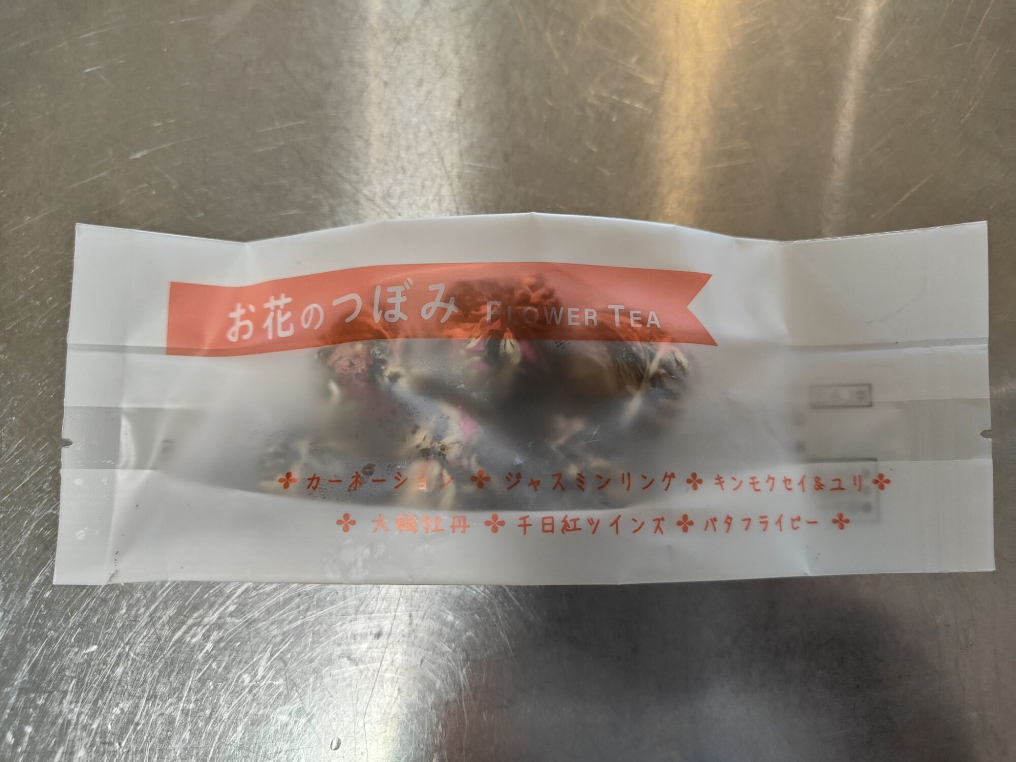 原材料白茶、カーネーション、ジャスミン、カレンデュラ、千日紅、牡丹、バタフライピー、ユリ、キンモクセイ