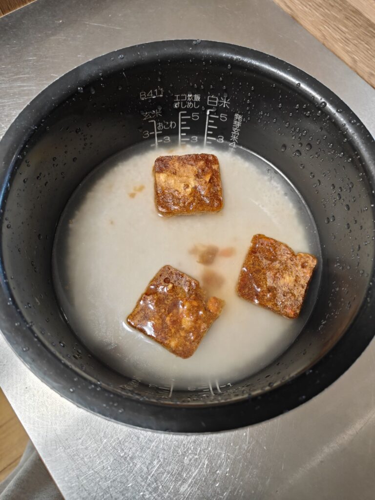 ブロックを数分浸しよくほぐしてから普通通りにご飯を炊けばOK!