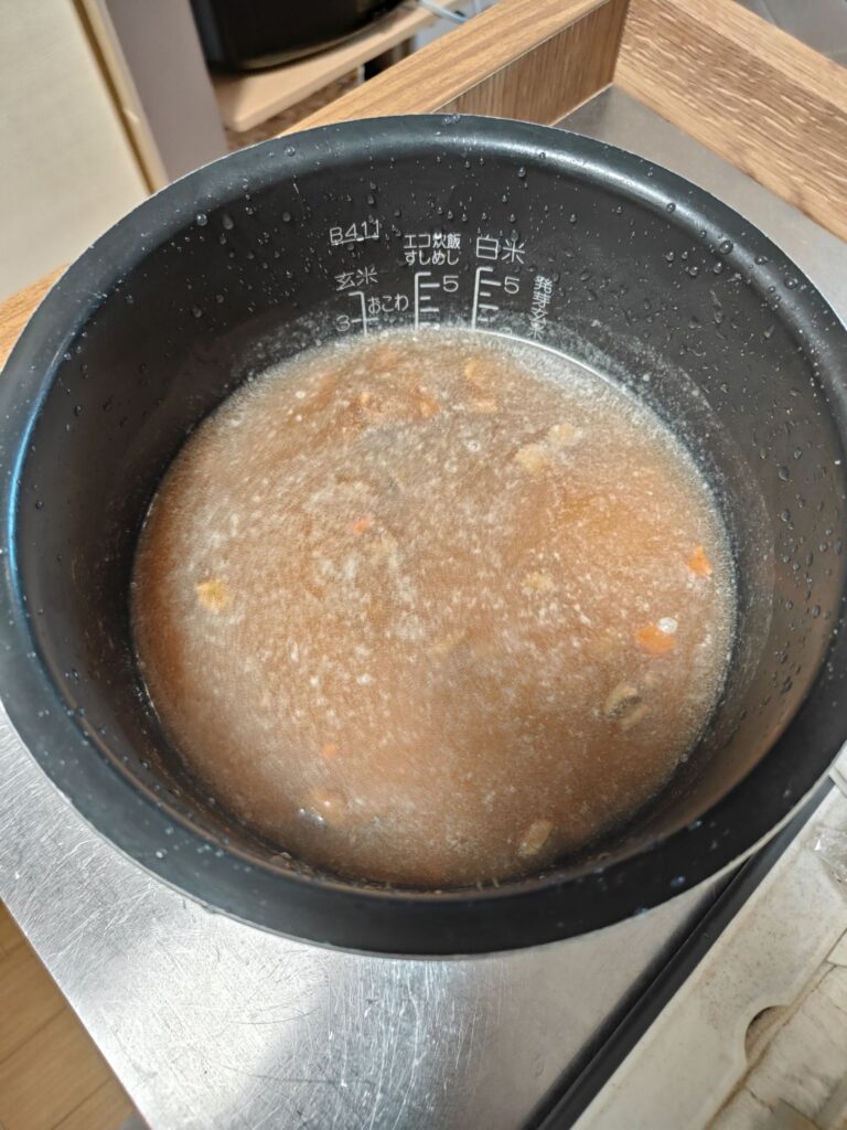 お米を研ぎ、白米を炊くときと同じ水加減に合わせます。