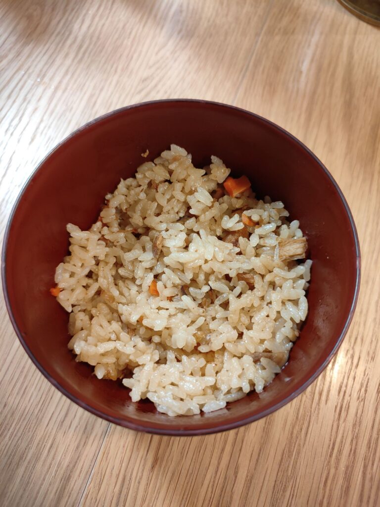 商品に【かしわ飯の素(1合分)1個使用時】と記載があったので、3合分で炊いてみました!