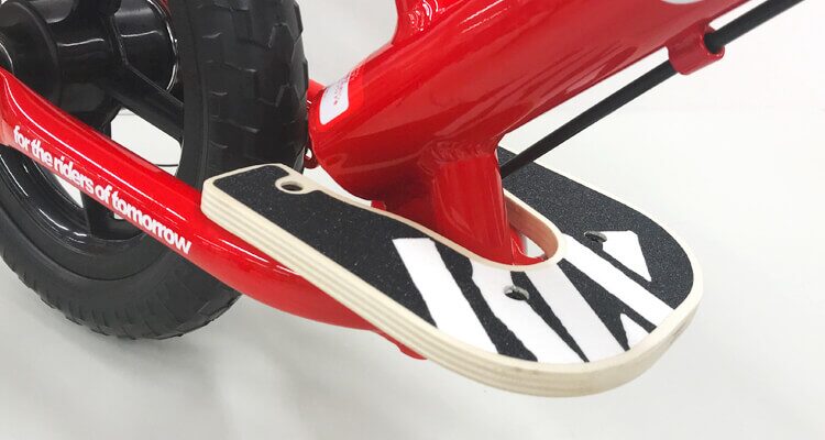 自転車へのステップアップを考慮し、スケートボードのようなフットデッキを標準装備。